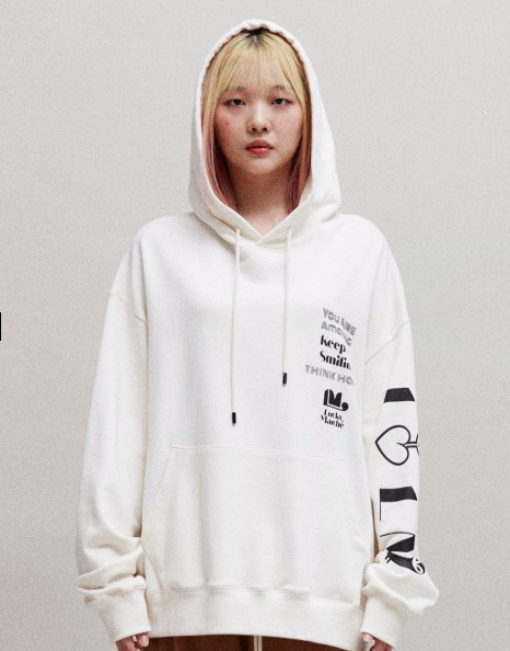 아이보리 톤의 후디 스웻셔츠와