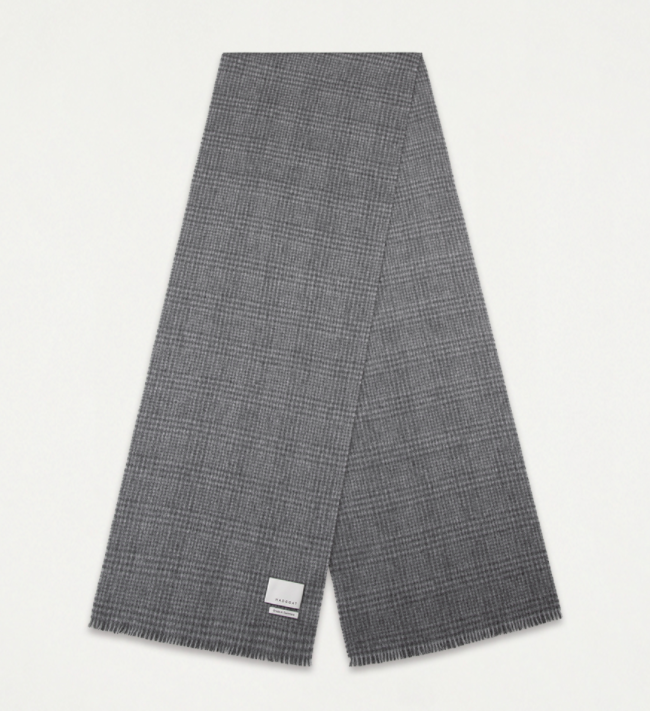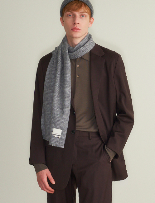 우븐 스카프에 세련된 글렌체크 패턴을 넣은 스카프인데요. 단정하면서도 세련되게 코디하고 싶은 날에 잘 어울리는 톤 온 톤 배색의 은은한 체크 패턴입니다. 블랙/그레이로 구성된 체크와 다크 그레이/라이트 드레이로 구성된 체크 두가지 색상이 있습니다. 가격은 158,000원.